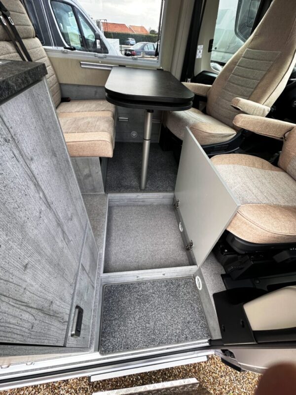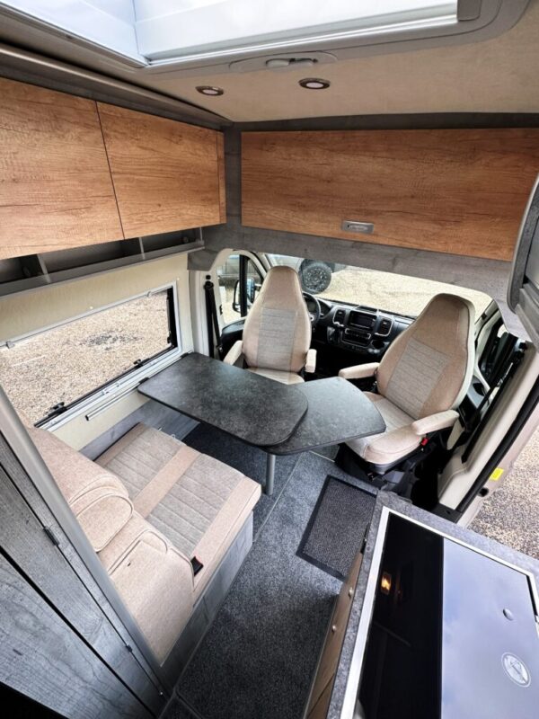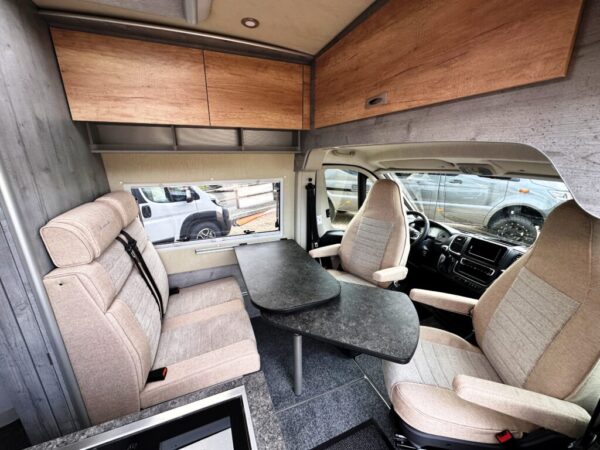 Salon avant avec sièges pivotants et banquette réglable en profondeur, transformable en lit d’appoint